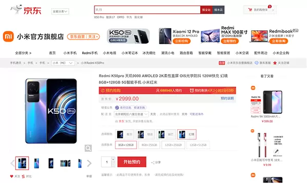 2K直屏顶级性能狠超想象 小米Redmi K50京东售价2399元起