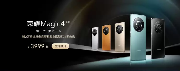 荣耀Magic4系列收获了国内外媒体和用户的极高评价及关注度。为满足用户购买热情,海外发布会后,荣耀商城第一次时间开启全网独家预订,用户参与100元订金预订活动,即可获赠机场贵宾厅权益,老用户还可加赠50元积分。