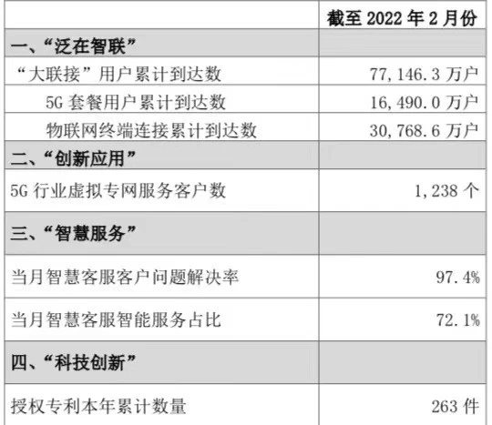 3月21日闭市后,中国联通上市公司披露2月份运营数据公告。围绕“网络强国、数字中国、智慧社会”建设,基于公司“强基固本、守正创新、融合开放”新战略及“大联接、大计算、大数据、大应用、大安全”五大主责主业,为更好反映公司把握新机遇、拥抱新变化、实现新发展的积极进展,中国联通打破上市20年来传统,首次系统优化月度自愿信息披露指标。