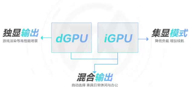 当然,作为天选air最大的亮点之一, 那就不得不提一下“双显三模”显卡切换这项技术了。你可以快速在独显直连、混合输出以及集显模式自由切换,以便于应对设计创作、日常使用、外出办公等各种情景。简单来说就是你可以自己根据自己的使用情景切换显卡模式,要进行高负载任务时开启独显直连释放显卡实力,要外出时则切换集显模式,配合大容量电池以及PD快充,随时随地保持满载的续航能量!