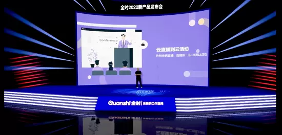 据了解,全时本次线上发布会不同于常规发布会的“超大屏幕播放PPT”风格,全时云景采用动态运镜、虚拟大屏以及远近机位切换相结合,实现现实景深般的视觉变化,打造极致视觉感受,让线上活动内容具体可感,拉平线上线下观看体验,将虚拟发布会场景真实化。