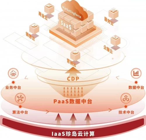珍岛打通marketingforce智能营销生态,贯穿营销前、中、后的全链路企业数字化营销服务,同时在底层技术与数据架构层面,基于珍岛云原生技术理念,升级珍岛IaaS基础计算平台,构建了珍岛PaaS中台体系,分布式计算架构的技术中台体系,大数据平台为基础的实时数据中台,以及机器学习模型训练与执行的AI中台,并在此基础上构建了业务中台,进而实现大中台、小前台打通的技术架构方案,以All-In-One一站式营销生态赋能企业数字化智能化转型。