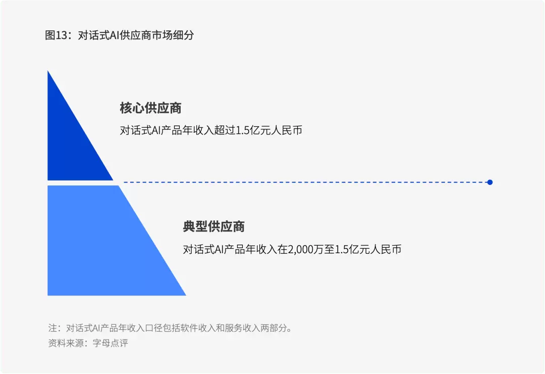 • 典型供应商:对话式AI产品年收入在2,000万至1.5亿元人民币。