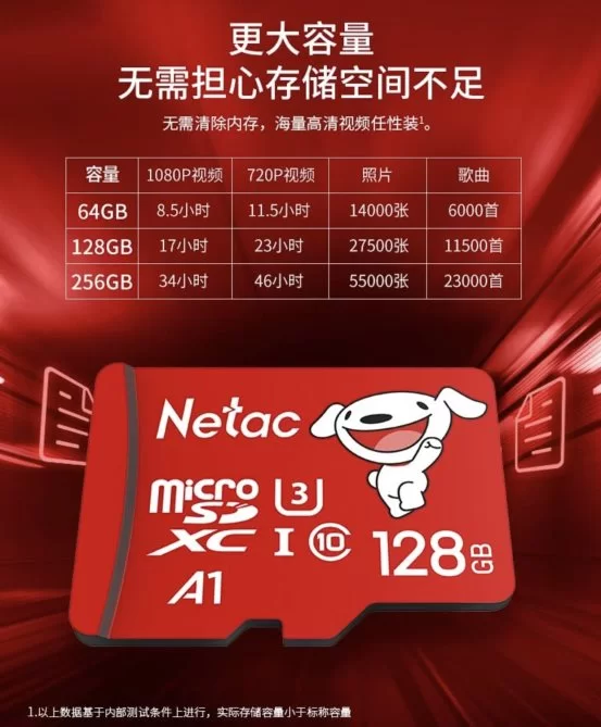 存储卡的外观非常漂亮,背景中国红加上京东金属狗,看起来很时尚吸睛。