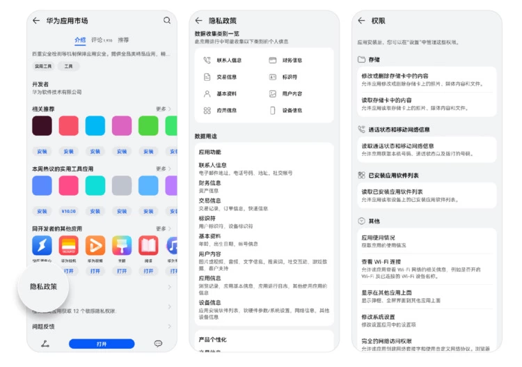 作为华为应用市场在2021年推出的新功能,“隐私标签”可以改进应用获取用户个人信息的呈现形式,让用户对应用获取的各项隐私权限更一目了然,使得用户对应用获取个人信息的知情权和控制权获得保障。
