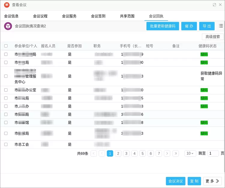 并且可批量核验最新的参会人员健康码信息。