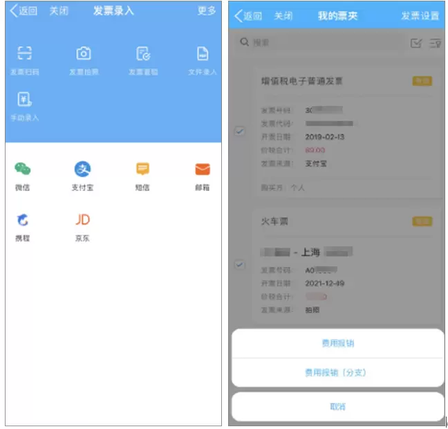 泛微实现电子发票电子化报销,电子发票可以通过文件,微信、支付宝、短信等各种途径上传到系统;纸质发票可以通过拍照(可多张一起),扫描二维码等方式上传到系统,直接在移动端即可发起报销。