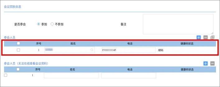 通过输入注册过健康码的电话号码,查询参会人员健康码信息,完成健康码核查。