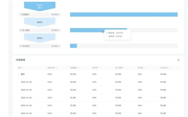 主要用于分析一个多步骤过程中每一步的转化与流失情况。帷幄 Analytics 支持自定义漏斗步骤,通过异常的数据指标找出有问题的环节,从而解决问题,最终达到提升整体转化的目的。