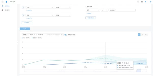 通过高性能 AI 预测模型建模时间序列数据,深挖业务数据的内部规律,支持企业做出科学决策。该功能基于事件分析中的时序预测折线图,用户使用时只需要打开开关即可使用,极大的降低了用户使用预测模型的成本。