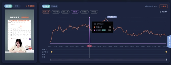 蝉妈妈场控直播录屏,开播自动录制全程,结合数据趋势图立刻回看直播高光片段和突发事件;还可查看主播带货细节,画面精确到每一帧,并且支持任意下载,便于吸取经验,助力高效复盘