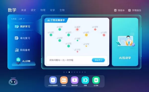 以特色功能“AI个性化精准学”为例。学生只需做几道测试题,AI个性化精准学便能在海量试题中分析出学生对知识点的掌握情况,从根本上找出学生做错题的原因,并制定个性化的学习路径,实现因材施教,帮助学生彻底学透知识点,学习质量效率双提高。