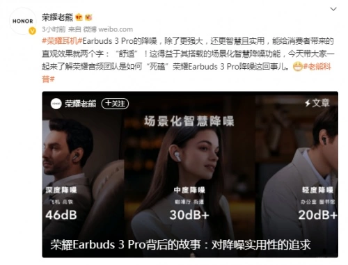音质一直是衡量耳机产品优劣的重要标准,对于TWS耳机来说也不例外。针对荣耀Earbuds 3 Pro音频背后的故事,@荣耀老熊 在微博上从发声单元、堆叠设计和音质调教三个方面进行了分享。