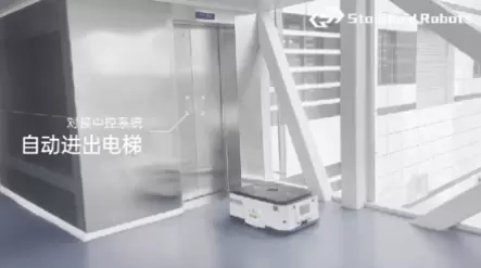 此外,AMR搭载无线对接模块,可以对接车间内的电梯、自动门、货淋室等设施,达到自动开关的效果,实现跨场景高效搬运。