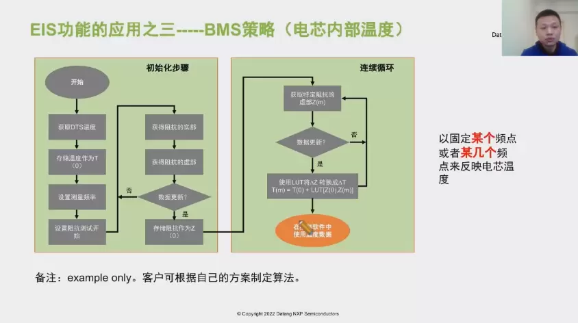 大唐恩智浦半导体公司高级现场应用工程师刘欢欢为观众带来了带电化学阻抗谱测量功能的BMS芯片,该芯片不仅仅提供了一个新的电芯参数,更提供了更多的应用可能性,进一步为大家的BMS安全保驾护航。