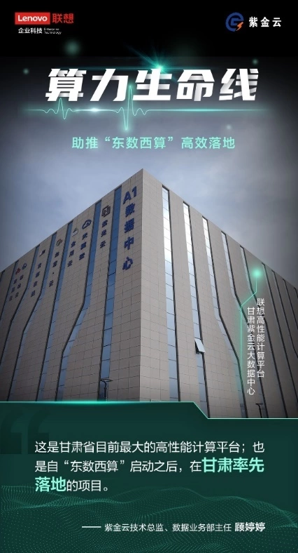 紫金云数据中心项目是甘肃省“十三五”信息化发展规划中的重点工程项目,是甘肃省发展数字经济的重要基础平台。影片中所记录的紫金云高性能计算平台,已建设完成并投入运营,此平台是紫金云数据中心基础平台的重要的组成部分,它是甘肃省目前规模最大的高性能计算平台,也是自“东数西算”工程启动之后,在甘肃率先落地的项目。影片中令紫金云技术总监、数据业务部主任顾婷婷十分骄傲的高性能计算平台,正是联想参与建设的。