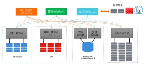 计算、存储网络采用目前业界先进100Gb HDR Infiniband高速网络,实现计算和存储网络融合设计,全线速无阻塞。