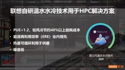 提高用电效率,推动长期主义的高质量发展。“东数西算”要求国家枢纽节点算力集群PUE达到1.25以下。联想自主研发的“温水水冷”技术能够把整体PUE值降到1.1以下,节省42%以上的能耗和间接碳排放,进而实现废热的重复利用。联想温水水冷技术入选了《国家绿色数据中心先进适用技术产品名录》《构建网络空间命运共同体实践案例集》。