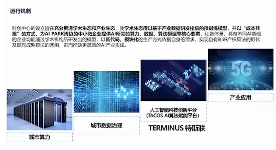 据刘斌介绍,德阳科创中心的设立旨在充分贯通学术生态和产业生态,使学术生态得以基于产业数据研发相应的预训练模型,并以“成本共担”的方式,为AI PARK周边的中小微企业提供AI所需的算力、数据、算法模型等核心要素,让各体量、具备不同AI基础的企业均能通过学术机构所研发出的模型,以低代码、模块化的生产方式依据自身的需求,实现自有知识产权算法的孵化及既有成熟算法的调用,进而推动更高效的AI产业实践。