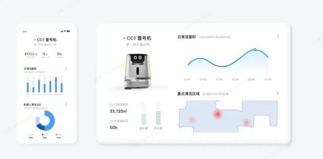 CC1可进行70cm窄道清洁、8°爬坡及4cm地面缝隙跨越,可在包括硬质地面和短毛地毯在内的不同硬度、不同材质地面上完成清洁任务,广泛满足了不同场景的平整地面清洁需求。目前CC1已经在众多场所测试落地,包括写字楼、住宅、企业办公空间、商业综合体、医院、交通、零售、工厂等,CC1凭借出色的清洁能力获得了客户的高度认可。