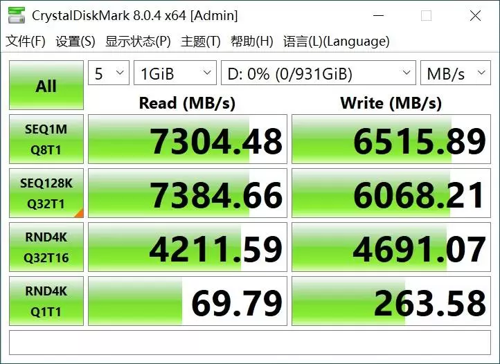 既然大家都已了解到PCIe 4.0的技术优势,也知道了PCIe 4.0 SSD的产品价值,那么现在市面上有哪些值得考虑的PCIe 4.0 SSD呢?铠侠PRO SE10就是这些高性能SSD中的佼佼者,它的实测顺序读取速度达到了7304.48MB/s,顺序写入速度也达到了6515.89MB/s,这个读写表现已经超过了标称,可以满足许多对硬盘极致性能要求的发烧友需求。