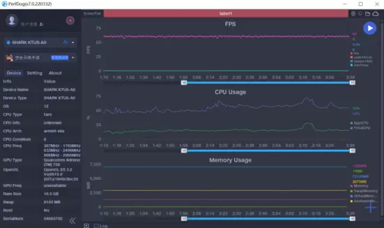值得一提的是,针对用户经常使用的游戏场景,黑鲨团队做了 GameEngine 软件性能优化的升级,RAMDISK 磁盘加速器功能,可以大幅提高数据读写速度,大大缩短游戏启动和加载时间,根据用户的使用场景动态调度相应的存储技术,为玩家提供最佳的存储读写解决方案同时还搭载了 ThermalControl 关键器件热控优化以及 AI 进程监控,全方位 Al 深度学习和后台调校。在测试中我们发现,在GameEngine 游戏引擎的支持下, 黑鲨5 Pro的游戏帧率表现更加稳定。