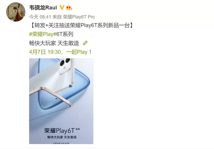 荣耀Play6T系列4月7日发布 畅快大玩家天生敢造