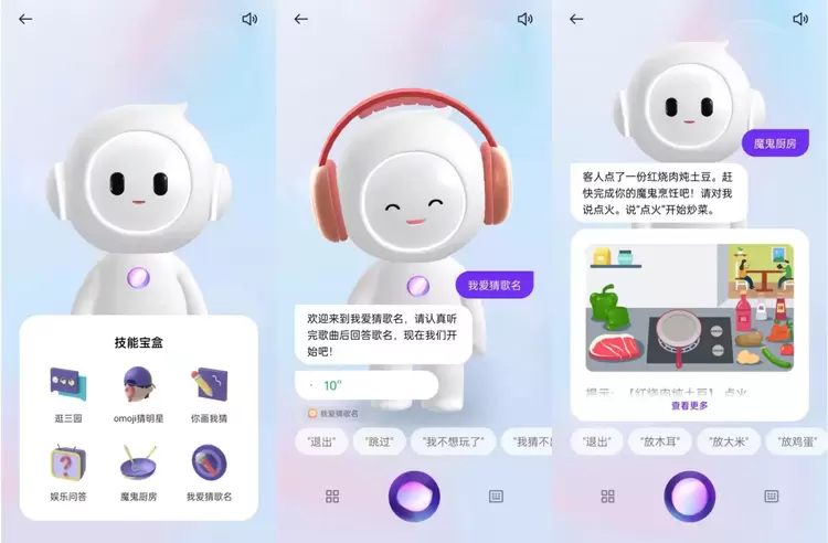 小布助手致力于将科幻和现实完美交融,提供真实有趣的交互体验,为用户带来更丰富的内容呈现。通过打造3D场景、AI驱动的数字人和故事设定,让用户获得以聊天互动为主兼具游戏娱乐的沉浸式聊天新体验,并支持智能AI驱动来感知用户情绪比如开心、难过、夸赞、生气等等,带给用户更加生动、自然的交互体验,让用户面对智能助手能够聊得下去、聊得舒服。比如对小布说“我心情不好”,小布还可以为你带来小游戏哄你开心。
