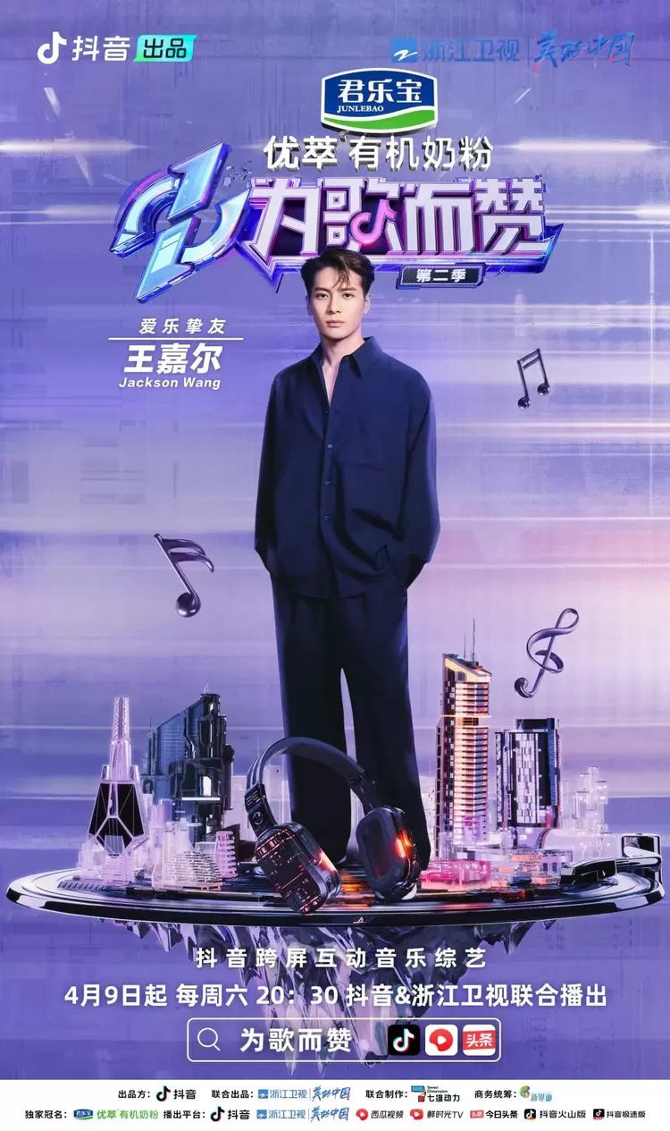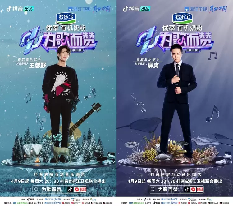 由抖音出品的跨屏互动音乐综艺君乐宝优萃有机奶粉《为歌而赞》第二季今日正式官宣首发爱乐歌手阵容:雷佳、杨宗纬、郁可唯、袁娅维、马思唯、柳爽、王赫野以及爱乐挚友:王嘉尔。4月9日起每周六20:30,在抖音和浙江卫视播出,西瓜视频、鲜时光TV、今日头条、抖音火山版、抖音极速版联合播出。舞台性与音乐性双重升级的《为歌而赞》第二季,将会为观众们带来怎样的打歌舞台呢?
