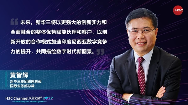 活动上,新华三集团联席总裁、国际业务部总裁黄智辉就新华三与印度尼西亚的合作与未来发展方向发表讲话,他表示:“自新华三集团2019年正式进入印度尼西亚市场以来,印度尼西亚成为新华三海外业务布局的重要组成部分之一,我们不断深入参与当地政府、金融和教育等行业的数字化建设项目,把握各行业数字化发展机遇。未来,新华三将以更强大的创新实力和全面融合的整体优势赋能伙伴和客户,以创新开放的合作模式加速印度尼西亚在全球各领域内数字竞争力的提升,共同描绘数字时代新图景。”