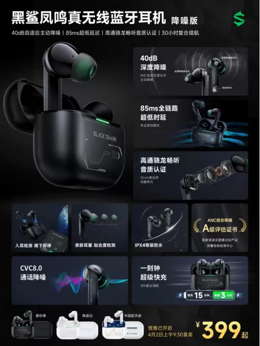 目前全新黑鲨5系列已在黑鲨商城、黑鲨京东自营官方旗舰店、小米商城等官方渠道正式开售。价格方面,黑鲨5 8+128GB 2799元,12+128GB 2999元,12+256GB 3299元;黑鲨5 Pro 8+256GB 4199元,12+256GB 4699元,16+512GB 5499元;黑鲨5 RS 8+256GB(骁龙888) 3299元,12+256GB(骁龙888 Plus) 3799元;黑鲨5 中国航天版12+256GB 3499元;黑鲨5 Pro 中国航天版16+512GB 5999元;黑鲨凤鸣真无线蓝牙耳机降噪版售价399元。追求极致游戏体验的的玩家敬请关注。