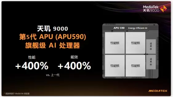 天玑9000搭载联发科第五代AI处理器APU590,性能能效双双提升400%(图源网络)