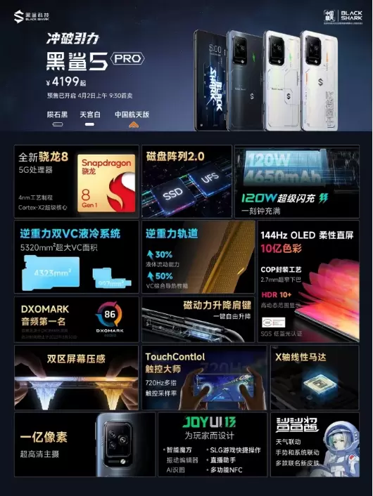 今日,备受玩家关注的黑鲨5系列游戏手机再次开售,凭借强悍的性能与低调又不失科技感的外观提前预定了2022年上半年最值得入手游戏手机的位置。