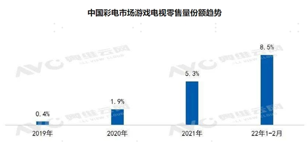 此前,游戏电视定位的消费人群主要是主机游戏玩家。但随着云游戏市场的爆发、电视性能的提升、游戏玩家对于沉浸感音画体验的追求、以及AR/VR游戏的普及,游戏电视正在取代“小屏”,成为游戏玩家们的首选。奥维云网数据显示,中国彩电市场游戏电视零售量份额从去年开始实现加速增长;根据京东家电数据,2021年度游戏电视销售额猛增27倍,成为高端电视最主要的新兴品类。