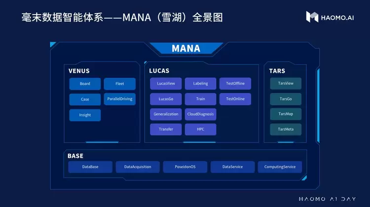 数据层面,毫末智行认为,数据就是自动驾驶技术的核心。在对海量用户累计行驶里程数据进行分析总结后,毫末得出了自动驾驶能力发展曲线:F=Z+M(X)。其中F代表产品力,Z代表毫末第一代产品,M是将数据转化为知识的函数,包括数据获取、表达、存储、传输、计算、验证,以及对成本和速度的影响,也就是数据智能体系MANA。以MANA为指导,并借助长城汽车庞大量产优势带来的海量数据来训练算法,进行大规模采集、测试与验证。