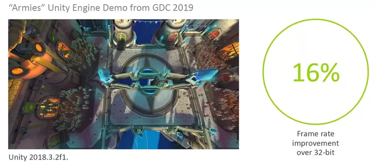 在手游方面, 通过Unity Engine “Armies” Demo对比测试结果表明,运行64位编码版本相比32位可带来16%的帧率提升。