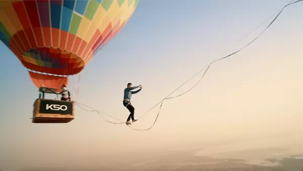 扁带运动,是一项用高超平衡性完成各种技巧动作的极限运动。这一次,Redmi将扁带通过两个热气球带往万里高空,飞行员刘翔、刘忠羽将以高超的驾驶技术确保热气球的位置相对稳定,而挑战者施海林将行走在这条百米高空中的扁带之上,在极度不稳定的环境中,配合超乎想象的平衡力,使用Redmi K50 Pro拍摄数十米之外的第三个热气球,以K50 Pro极致的1亿像素与强大的OIS 光学防抖能力,记录下这一个震撼人心的瞬间。
