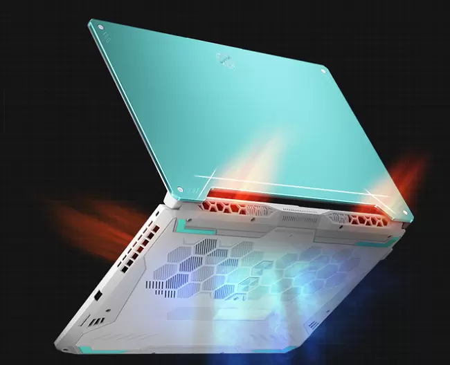 华硕天选2采用冰川散热系统,拥有双绝尘风扇+3出风口,特制扁平热管导热更快,风扇叶片较上代更薄更密,由53片升级至83片,配合2.0版绝尘通道和华硕梯形切割A壳,驱除热量更加高效。还有风道优化设计,底部蜂巢式进气口提升进气量,颜值与散热效率一个不落。除此之外,天选2还支持性能调节功能,FN+F5可切换安静/性能/增强三种散热模式,针对不同应用场景随心切换。