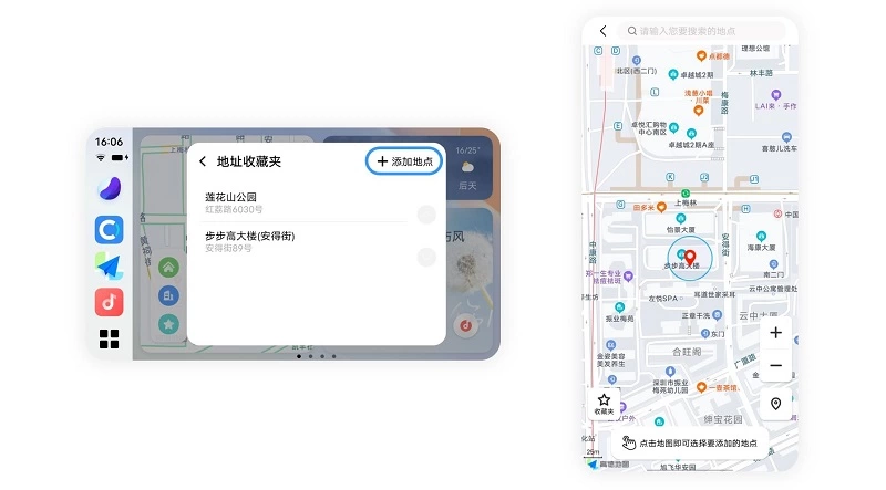 持续挖掘交互体验,Jovi InCar 2.0深入洞察用户实际使用中的习惯和需求,新增的“地址收藏夹功能”,使用户在车机端点击收藏夹按钮,即可快捷向收藏的地址发起导航,省去出发前搜索地址的繁琐操作。