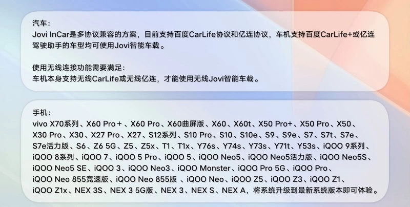 Jovi InCar 2.0新功能适配机型