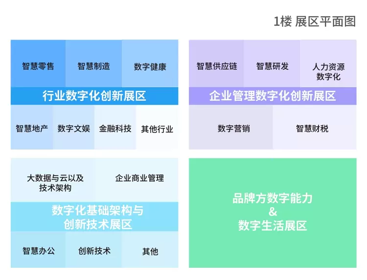 这一展区欢迎在此部门与管理流程中实践数字化创新的代表企业以及赋能企业内部各个部门数字化落地实现降本增效的科技厂商,包括但不限于数字营销、智慧财税、智慧供应链、智慧研发、HR数字化等。