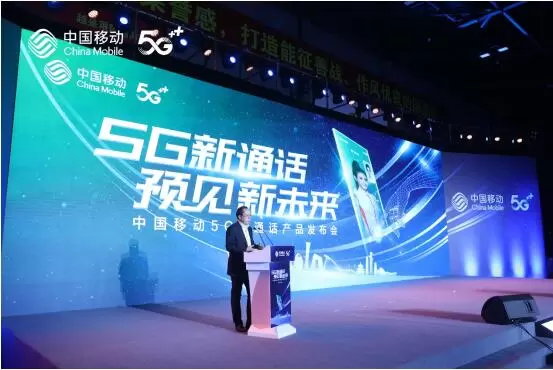 (中国移动市场经营部总经理首建国向在场媒体和合作伙伴介绍5G新通话)