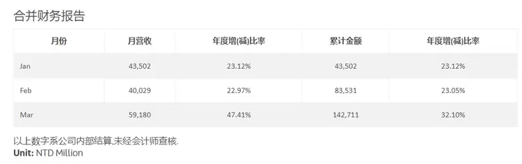 2022年第一季度结束,联发科于近日公布了3月的营收报告。数据显示,联发科在3月份营收达到了591.8亿新台币(约合人民币129.2亿元),首破500亿新台币大关,同比增长47.41%。综合看来,联发科2022年第一季度营收亮眼,同比增长达32.10%,创下历年来单季营收新纪录。
