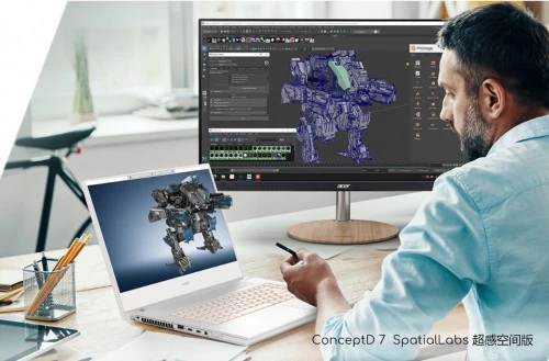 ConceptD 7 SpatialLabs 超感空间裸眼3D版是一款效能强大的创意设计本,专为3D创作者而生,搭载第11代英特尔酷睿i7处理器及英伟达GeForce RTX 3080 笔记本显卡,以及SpatialLabs融合光学、显示和感应的技术,将创作带进下一个层级,大幅提升2D创作者信息获取以及工作效率,并协助创作者做出更好的设计决策。此外,眼球追踪系统搭配3D显示模组,能够侦测并追踪使用者的脸部及眼睛位置与动态,让使用者无需配备头戴式显示器,即可看到3D立体成像。另外,透过SpatialLabs Model Viewer,就能将模型文件直接以3D立体形式呈现出来,对于需要精准控制或360度视角的情境,模型亦可旋转、移动甚至拖移出笔记本的屏幕,直至找到完美的观看角度。