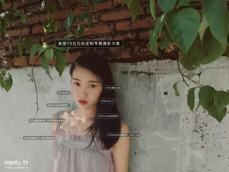 同样很黑科技的还有加技术标签的功能,美图T9可以显示根据不同拍照场景、光线、色温、人物来量身定制不同的美化方案,每张照片都可以给你专业“摄影师”的详细解读。