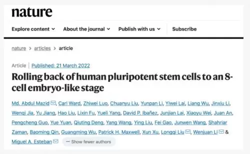 除上述全球首个非人灵长类动物全细胞图谱外,2022年3月22日,基于DNBelab C4和DNBSEQ测序技术在干细胞领域重大突破也在Nature上发表。该研究助力科学家精确得到诱导全能干细胞(8CLC),并且通过细胞图谱分析证明了发育得到组织的多样性,证明了8CLC的全能性,最终获得了人类体外诱导的全能干细胞。这一研究的突破,也是得益于单细胞测序技术的进步与应用。
