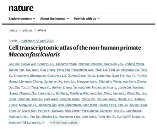 日前,由深圳华大生命科学研究院主导,吉林大学、中国科学院广州生物医药与健康研究院、瑞典卡罗林斯卡医学院、英国剑桥大学、西班牙ICREA研究所、新加坡ASTAR等来自6个国家的35个科研团队共同参与的首个非人灵长类动物(猕猴)全身器官细胞图谱发表于国际顶级学术期刊《自然》(Nature)。