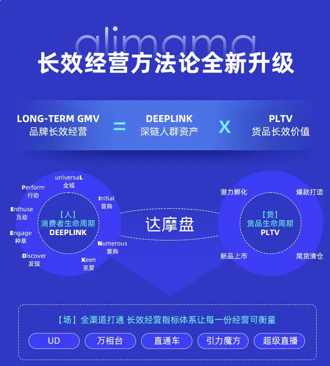 此外,在此前以消费者生命周期为核心的深链经营(DEEPLINK)人群方法论基础上,此次阿里妈妈新增货品长效价值方法论(PLTV),提出了人货联动链接全域的全新长效经营方法论(Long-Term GMV=DEEPLINK X PLTV),为品牌在平蓄期和⼤促经营场景中提供人货全域数智经营解决方案。