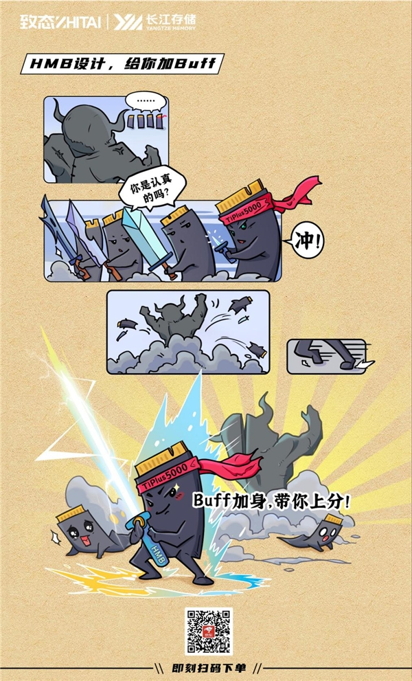 除此之外,TiPlus5000添加了HMB设计和智能温控系统,前者可以在读写时启动功能进行提速,当遇有系统内存不稳定,危及SSD数据安全时,也能自动禁用以保全数据,安全可靠。在硬盘满级发挥全速性能的时候,可以通过智能温控系统得到理想控制,保证温度冷静,流畅运行。
