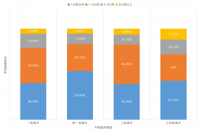 - 91.6%的职场人或多或少需要加班,近六成职场人平均每天加班超过一小时;